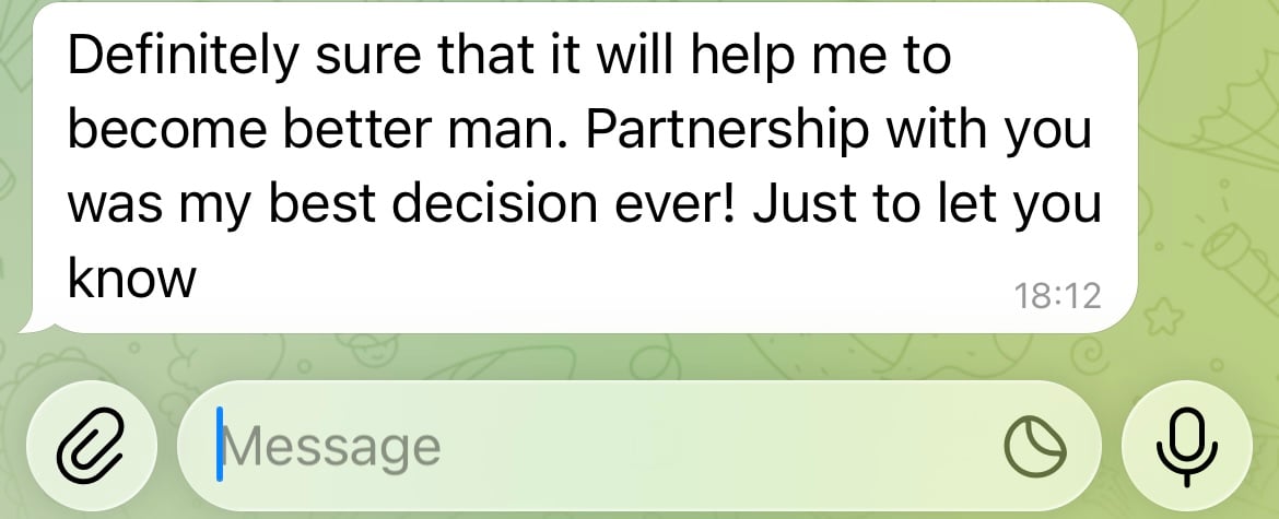 âBro, this flipped a switch in my head. My girlfriend literally started testing me again â in a good way â because she could feel my energy shift.â